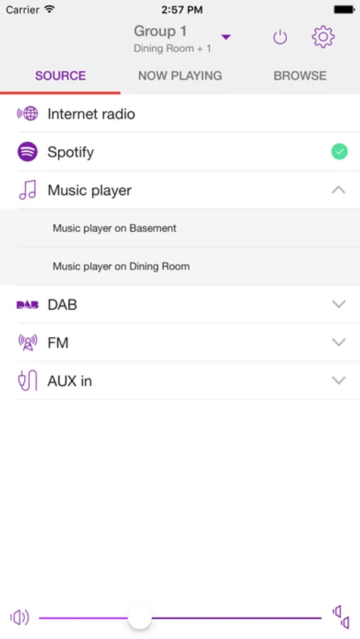 UNDOK™ allows you to control key functionality of your device including turning on/off, selecting the audio source, selecting the audio content, playing/pausing, setting the volume and accessing pre-sets.