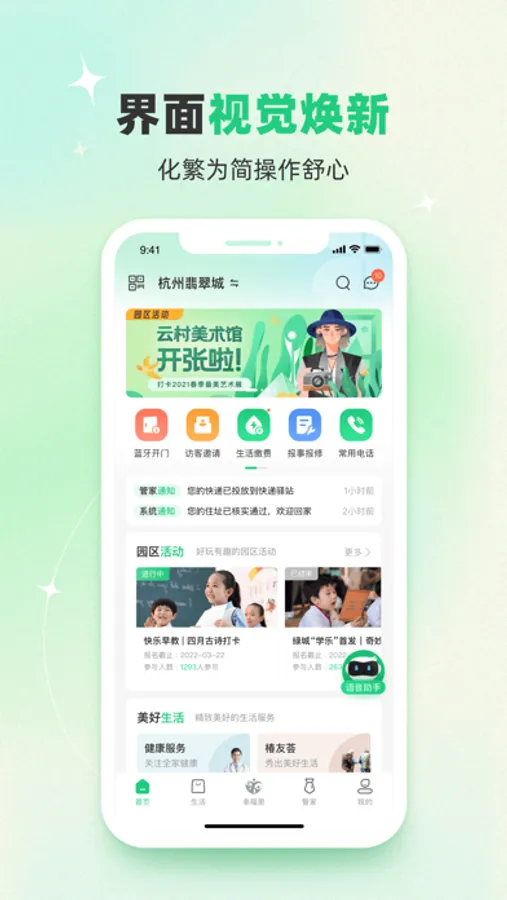 绿城生活App以维修报事、投诉表扬、生活缴费、访客管理、快递管理等基础物业服务为基础,提供送水、家政、园区超市、生鲜配送、绿城精选等园区生活服务,同时更全面丰富了友邻社交、业主自治、园区学院、园区金融等4大服务,为绿城业主营造更安全、更便捷、更和谐、更具幸福感的一体化智慧园区生活体验。