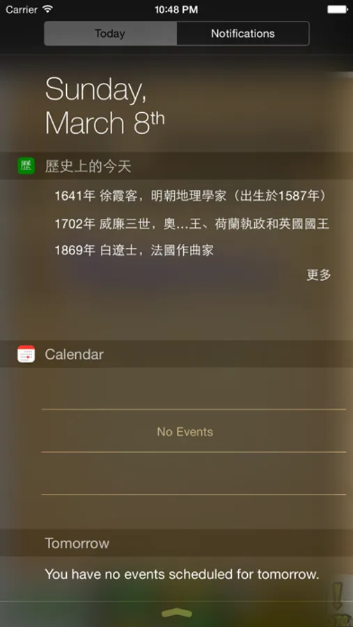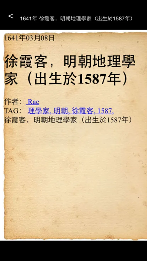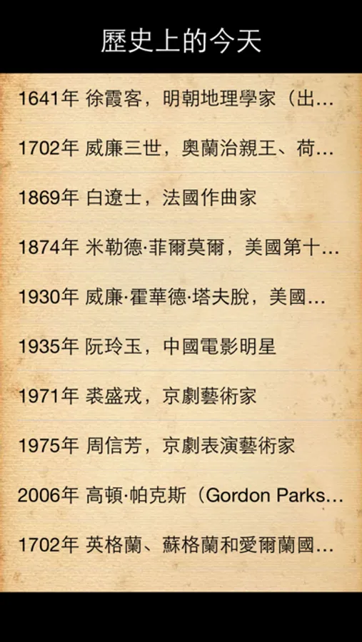 提供最詳盡的每一個關於今天,出生,死亡與重大事件的紀錄,並提供最新三則的紀錄於手機的首頁,希望能鑑古知今,繼往開來。