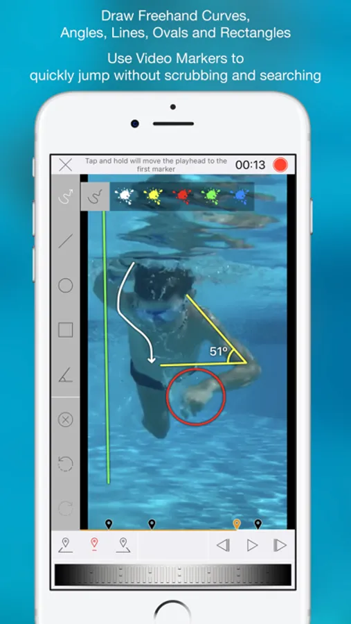 √ Draw shapes on videos – freehand curves, arrows, ovals, rectangles, straight lines and angles with predefined colours
