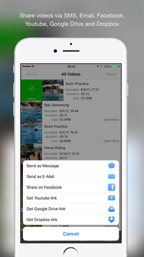 √ Quickly share videos via SMS, Email, Facebook, Youtube, Google Drive and Dropbox