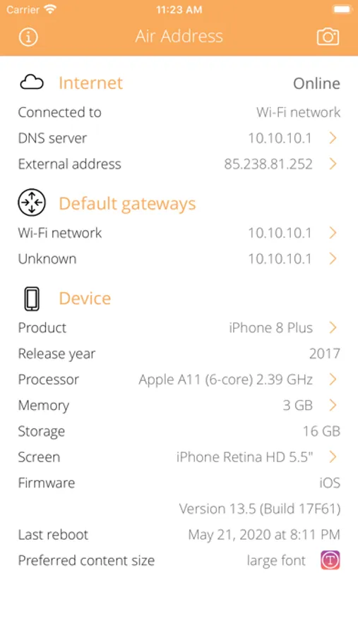 Air Address is a small utility that lets you show all information about your current internet connection. The Air Address app tells your current external public IP address and provides additional network and address information as well.