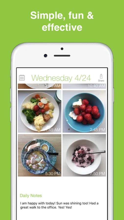 With the Food Diary See How You Eat app, you can see your daily meals at a glance, which helps you make healthy food choices. Meal reminders help you with regular eating, and you’ll feel more energetic throughout the day.