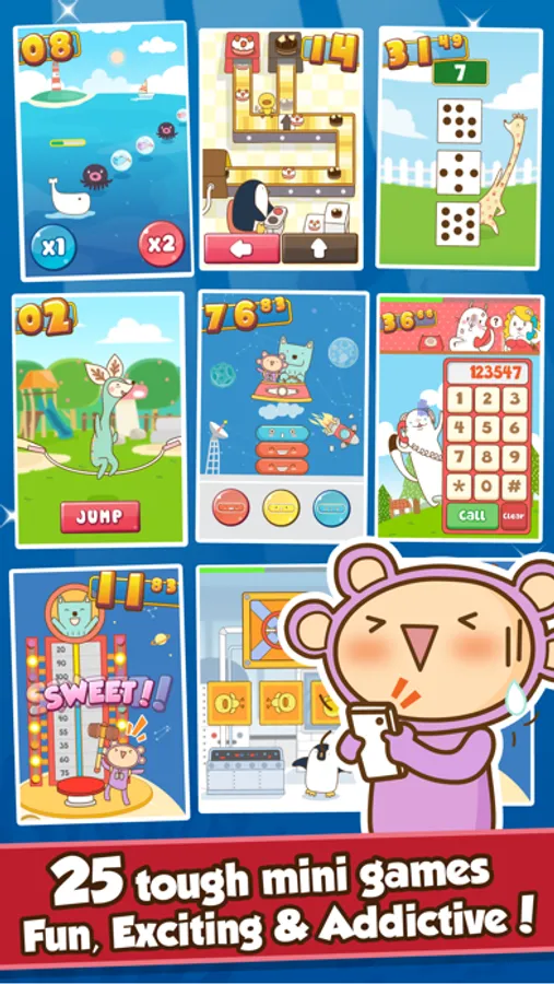 - Through the route, you will be experienced 25 challenging mini games that test your abilities and skills such as accuracy, speed, and memory.