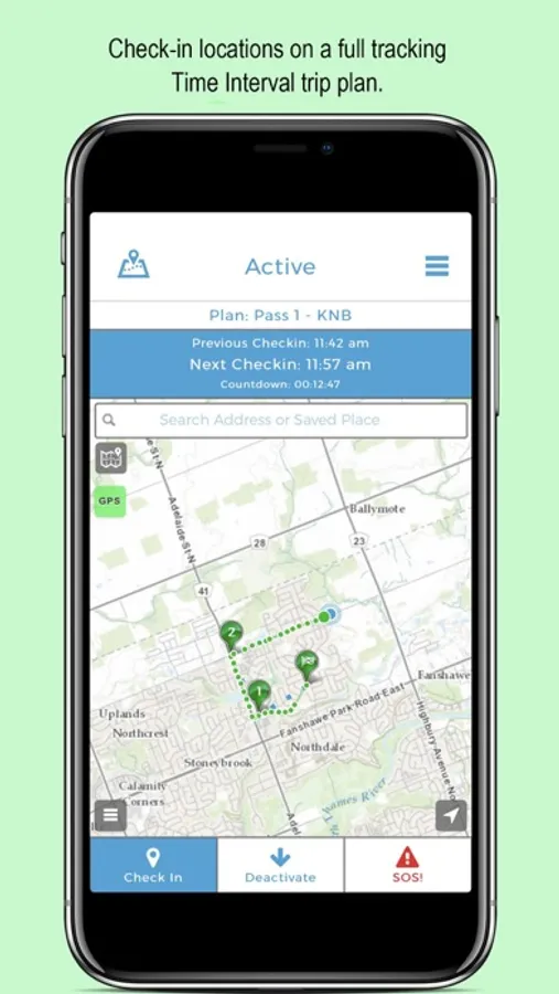 - Easily check-in with automated text reminders at predetermined locations or timed intervals
