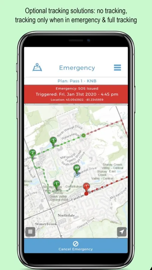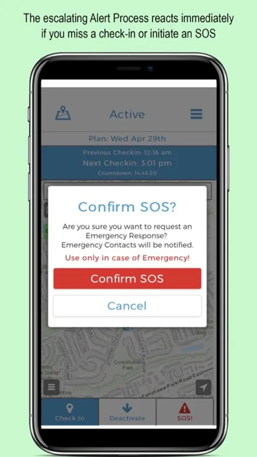 - The escalating Alert Process reacts immediately if you miss a check-in or initiate an SOS