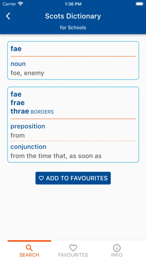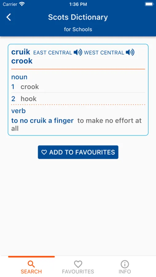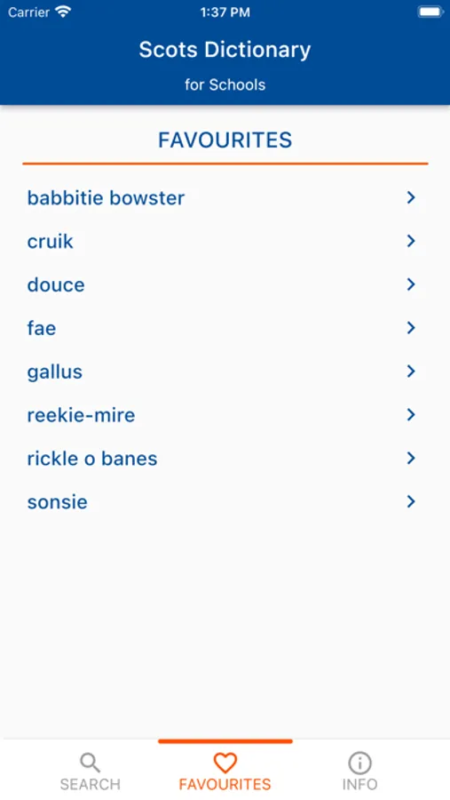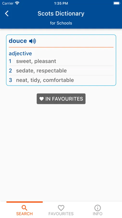 The favourites feature lets you build up a bank of words to read or practice at your leisure.