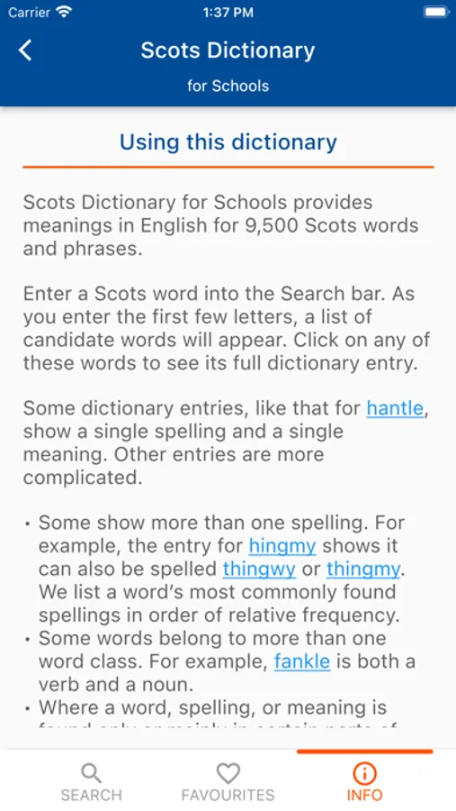 The Scots Dictionary for Schools is a free and friendly dictionary for use in the classroom or at home. Compiled by Dictionaries of the Scots Language SCIO, the nation’s authority on Scots, the Scots Dictionary for Schools provides meanings in English for around 9,500 Scots words and phrases. It also includes audio guides for around 600 words so you can hear their pronunciation as well.