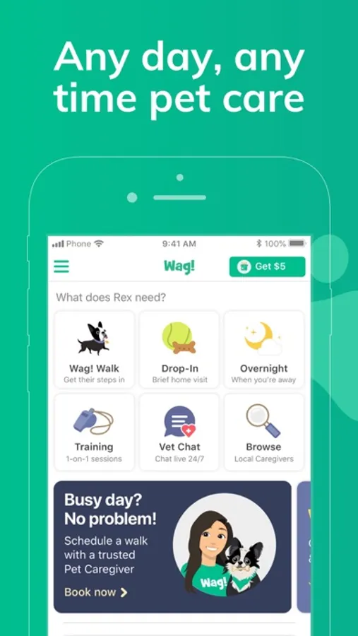 Book convenient pet care in your neighborhood with the Wag! app. Whether you’re looking for daily walks, planning a trip, stuck at work, or just want your best friend to have some company - any day, anytime pet care is available through the app.