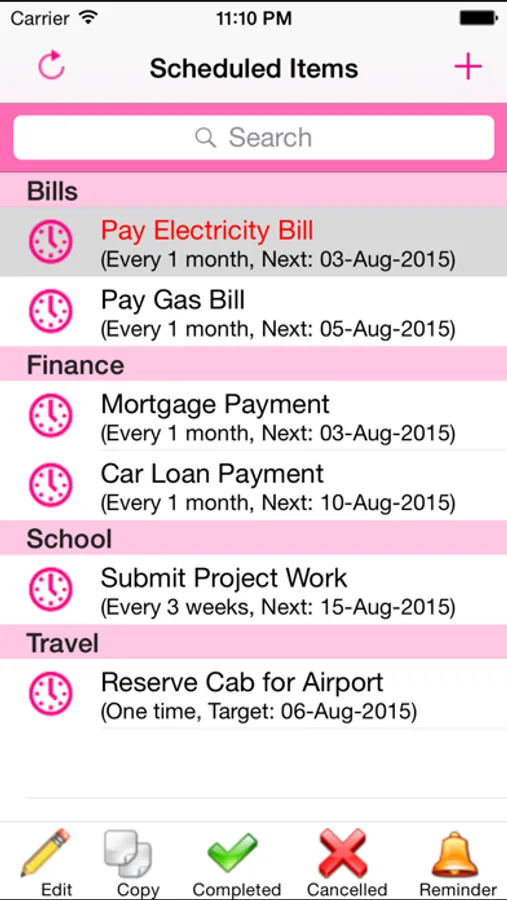 - target recurring items, such as schedule payment of bills and regular house maintenance jobs