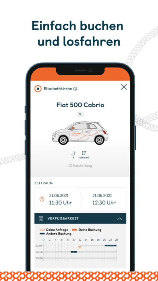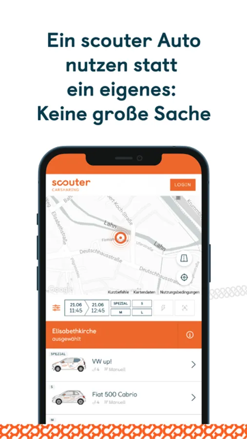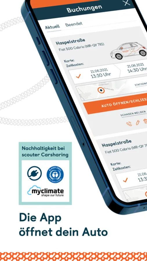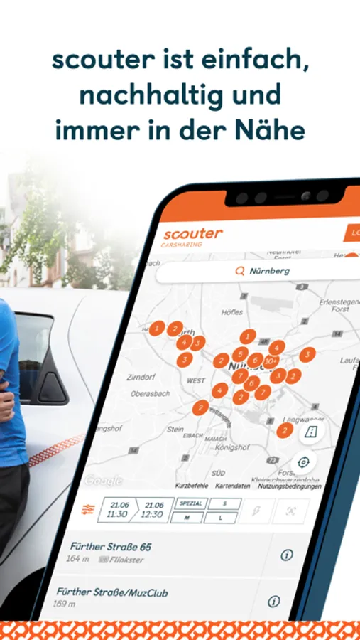 Hier findest du ganz einfach dein scouter Carsharing Auto, kannst es buchen, umbuchen oder stornieren. Die App navigiert dich zum Fahrzeug. Ist mal ein Schaden an einem Auto, hilft dir die App ihn ohne Mühe zu dokumentieren und melden. Deine Rechnungen kannst du jederzeit einsehen und downloaden.