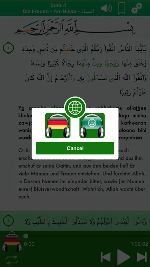 Diese Anwendung gibt Ihnen die Fähigkeit, lesen und hören alle 114 Kapitel des Heiligen Quran auf Ihrem iPhone / iPad / iPod Touch.