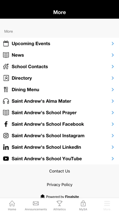 The Saint Andrew's School app provides parents, students, and employees with school information they need in one place, conveniently accessed and formatted specifically for consumption on their mobile devices.