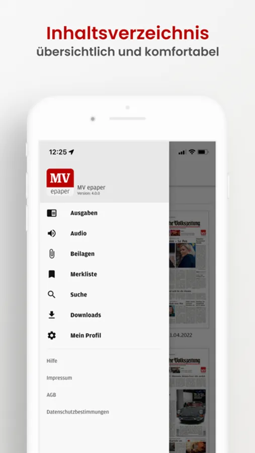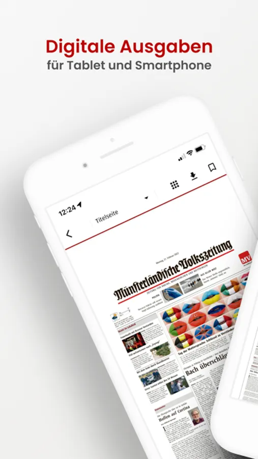 Das MV epaper gibt es für Smartphone und Tablet. Hier können Sie an jedem Erscheinungstag das MV epaper herunterladen und so durch die digitale Ausgabe Ihrer Tageszeitung navigieren.