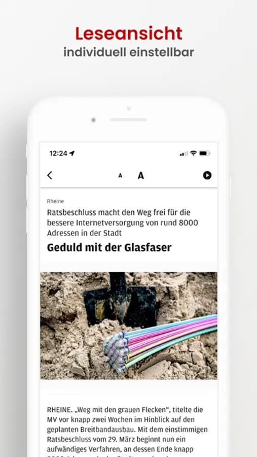 Einzelartikelansicht: Wenn Sie auf einer Zeitungsseite sind, können Sie per doppeltem Fingertipp auf einen Artikel die Detailansicht des Textes öffnen.