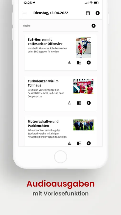 Vorlesefunktion: Die App liest Ihnen die Artikel auf Wunsch auch vor. Im Hauptmenü finden Sie den Punkt „Audio“ mit hörbaren Fassungen der Texte. Einfach zurücklehnen und vorlesen lassen.