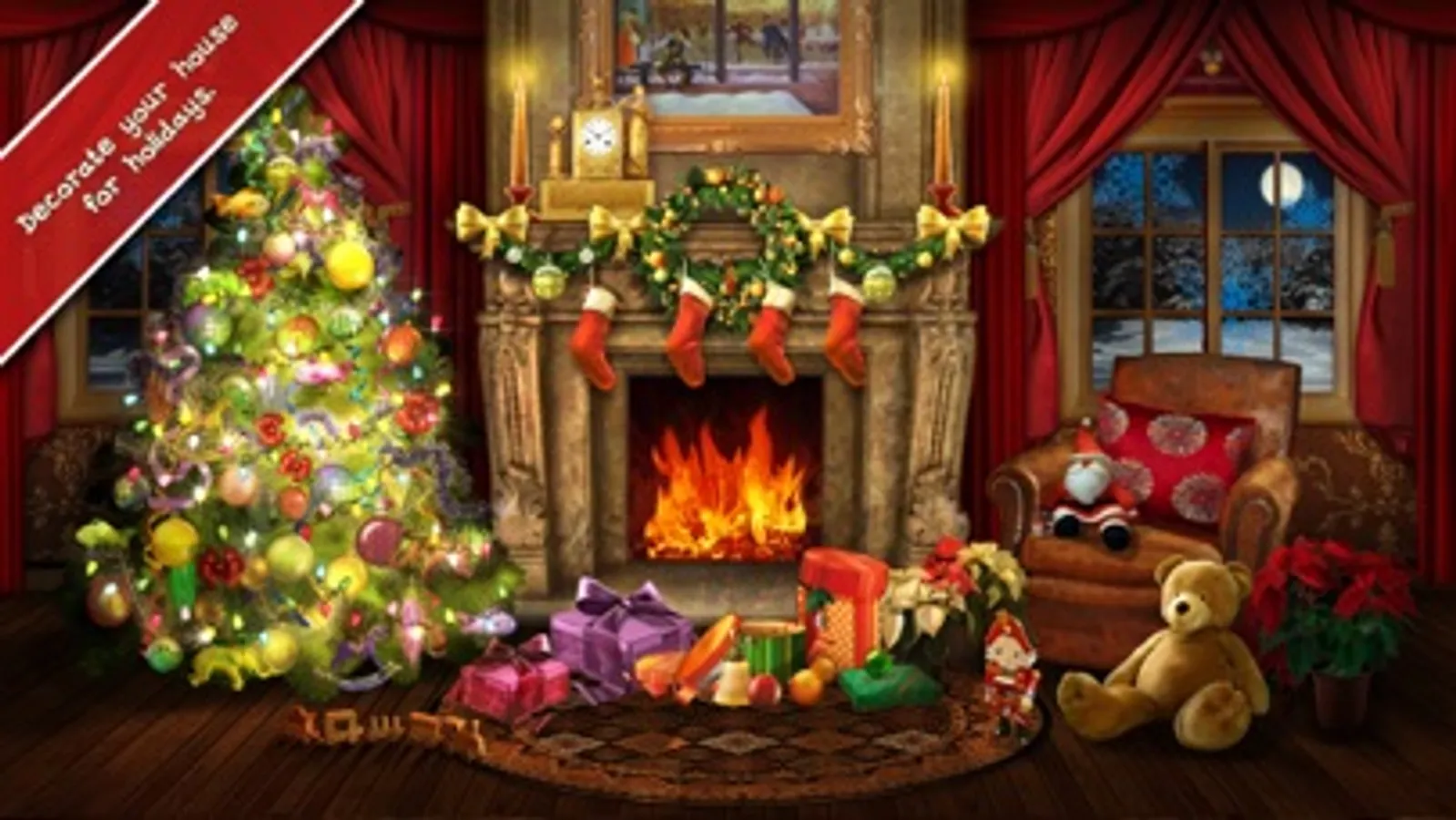 Play through cool Match 3 levels, collect Santa’s coins and prepare your house for Christmas with beautiful ornaments and decorations!