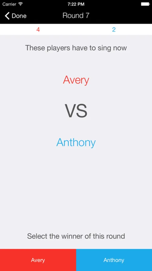SingTeam helps you to create players and create teams. If the teams are created, you can start with the duel. Sing team select for each round the players who have to compete against each other. Then you have to select the winner of the round and immediately the next player will be asked to duel.