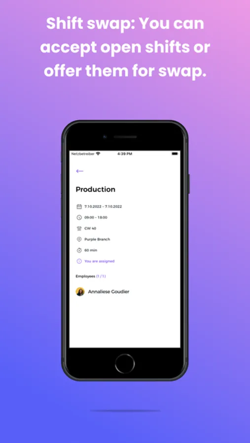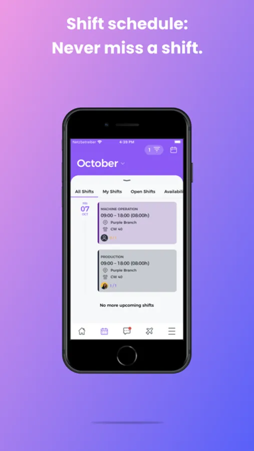 The shyftplan app is the easiest way to manage your shifts on the go. From applying for new shifts to submitting vacation requests or reviewing payroll with shyftplan everything is easy and right at your fingertips.