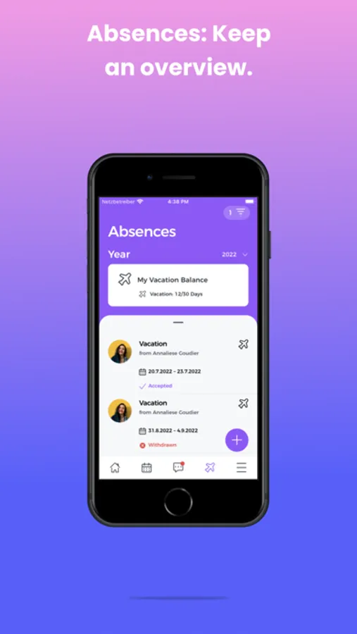 Plan your vacation and submit your days off digitally with shyftplan. Get an update on your requests as soon as they have been processed - delivered right on your phone.