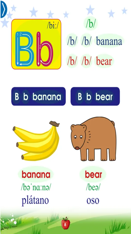 The book "English Phonics for Grade 1 Spanish Version (español)” includes 34 pages which are compiled according to the purpose "Learning by playing" and in the future we will integrate sound a long with illustrations (for example about illustrating a cat, when they touch the cat, there will be the sound "meow, meow"). Scientific research has shown that learning a second language, especially English learners from early age, increases the grey matter and stimulates the brain's potential. Therefore, it's necessary for parent to let their kids learn English at the early age. The utility you have when you use SmartBook: cheaper price than paper books (traditional books, SmartBooks Price: $0.99); You only pay once you buy the book and will be entitled to have all the benefits of the latest updates without having to pay extra money and use books forever without the fear of losing or tearing ...; Integrated - audio books (audio) mark each sentence, so when you read or listen to a sentence and want to listen again, you only need to touch the sentence and the sound of sentence will be played again; SmartBooks also has the feature of recording your voice (your voice reading the learning sentence) by clicking the icon Micro (icon Recorder), when you click on the icon Headphone (listen and write - listening and writing), screen appears with a lot of features to help you listen and write the sentence heard by key or by hand,... This is our breakthrough advance in the age of technology and it will help you a lot in learning language and reading conveniently.
