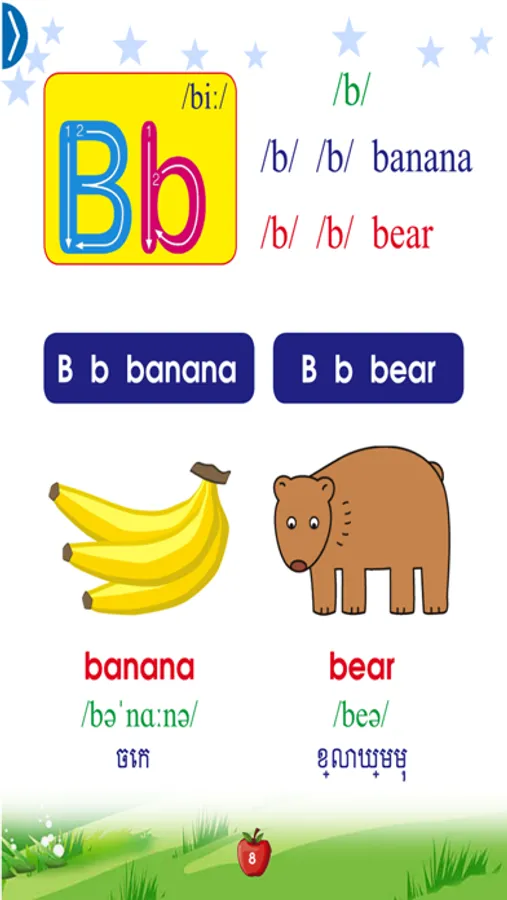 The book "English Phonics for Grade 1 Cambodian Version” includes 34 pages which are compiled according to the purpose "Learning by playing" and in the future we will integrate sound a long with illustrations (for example about illustrating a cat, when they touch the cat, there will be the sound "meow, meow"). Scientific research has shown that learning a second language, especially English learners from early age, increases the grey matter and stimulates the brain's potential. Therefore, it's necessary for parent to let their kids learn English at the early age. The utility you have when you use SmartBook: Integrated - audio books (audio) mark each sentence, so when you read or listen to a sentence and want to listen again, you only need to touch the sentence and the sound of sentence will be played again; SmartBooks also has the feature of recording your voice (your voice reading the learning sentence) by clicking the icon Micro (icon Recorder), when you click on the icon Headphone (listen and write - listening and writing), screen appears with a lot of features to help you listen and write the sentence heard by key or by hand,... This is our breakthrough advance in the age of technology and it will help you a lot in learning language and reading conveniently.