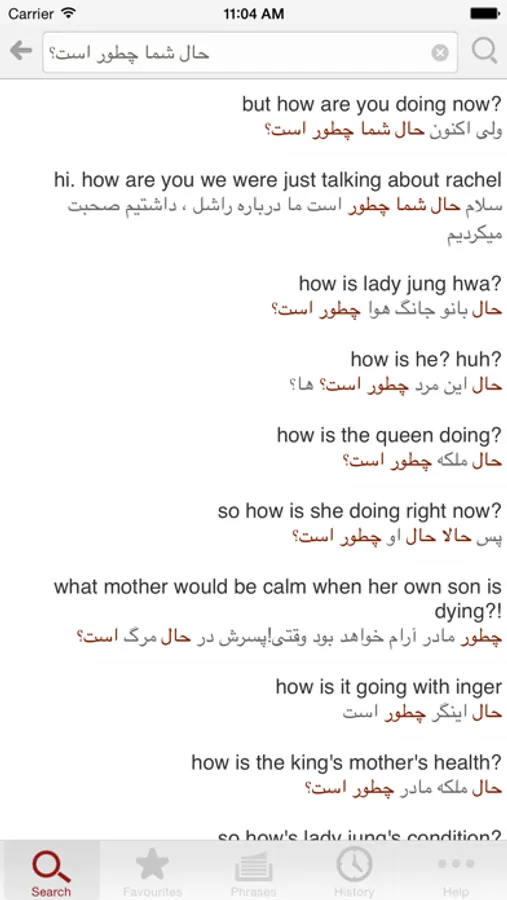 - Look-up for phrases in millions of high quality, hand picked dual-lingual English - Persian (Farsi) sentences