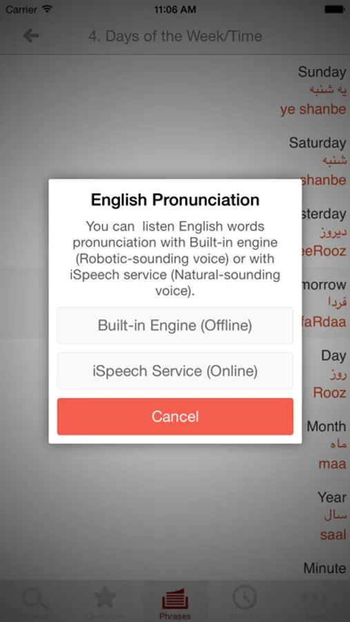 The Persian (Farsi) - English Dictionary & Phrasebook provides you a comprehensive and fastest offline dictionary combined with millions of bilingual example sentences.