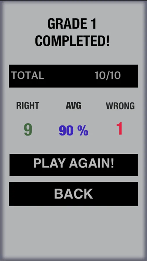 - After completing session for selected level of operation,App will display result page and show us how many correct answer / wrong answer.