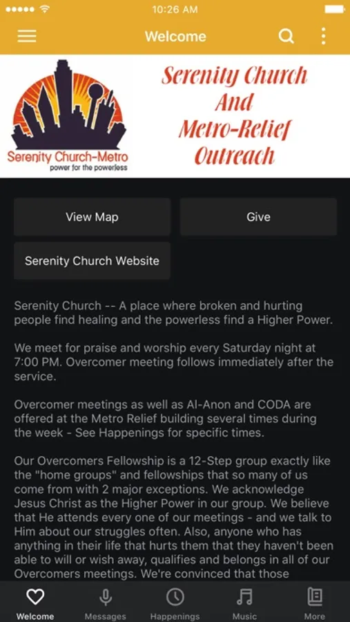 Serenity Church is a 12-step Recovery Church offering a safe place for those suffering from hurts that are out of your control. Through this App you can connect with Serenity Church and what we are about. Welcome Home!