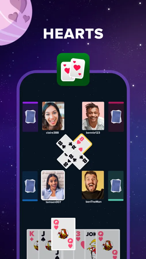 • HEARTS - The classic card game where you can break hearts, and shoot the moon! Hearts is a fan favorite for a reason.