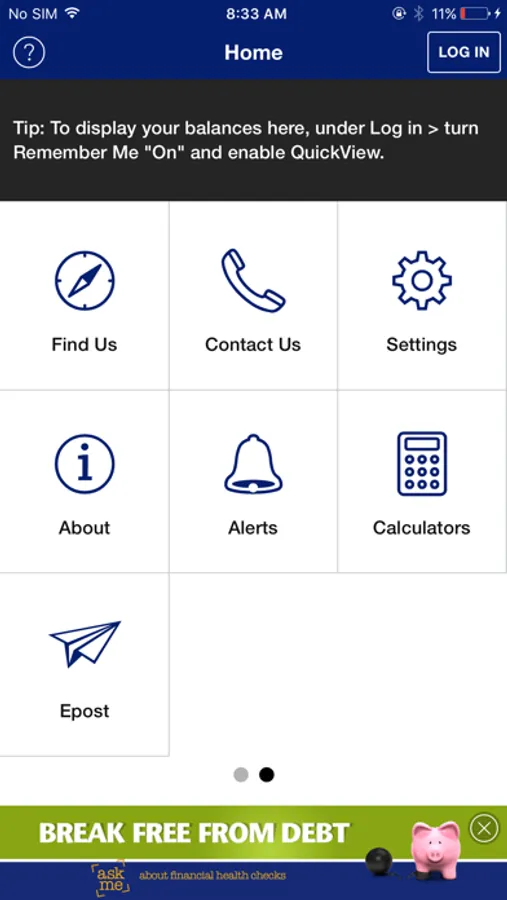 To take advantage of the full functionality of this app, you must already be registered and have logged in to online banking. If you are not an online banking member, you can still use the Branch/ATM locator, Rates and our Contact Us information.