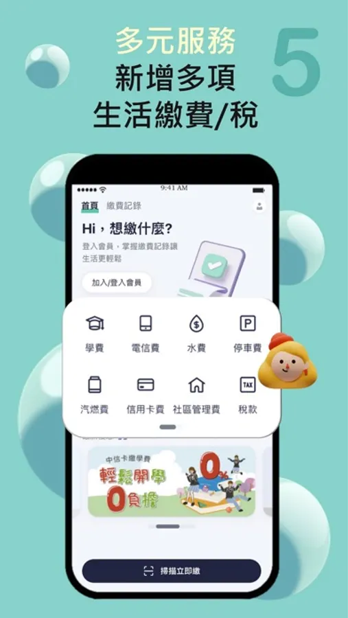 1.繳費項目:學費、電信費、水費、停車費、汽燃費、信用卡費、社區管理費、稅款、健保費、貸款等,持續增加中