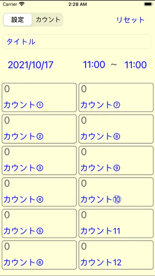タイトル、日付、開始・終了時刻、カウントするボタンのタイトルを登録します。