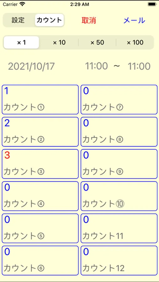 取消を押すと直前のカウント(赤数字)を取り消せます。