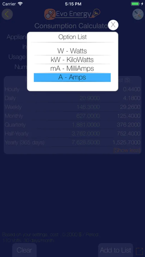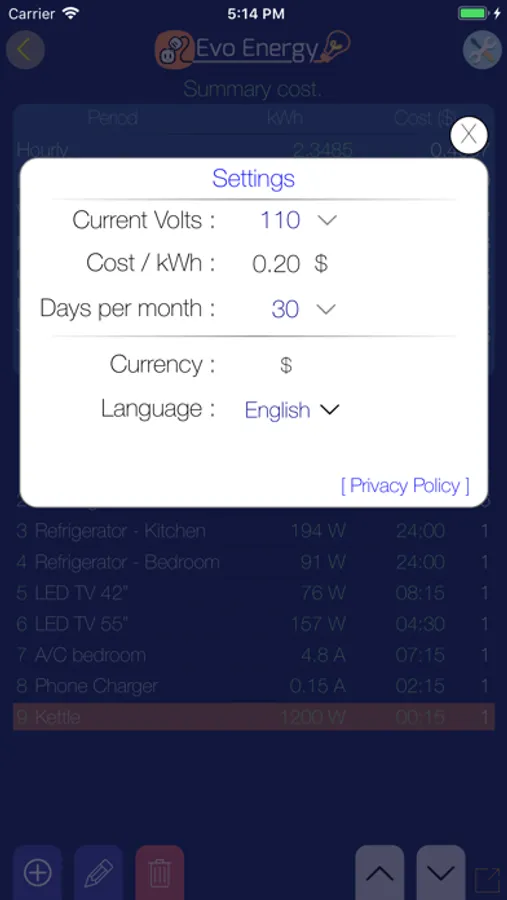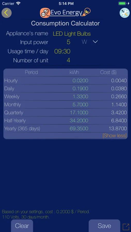 Evo Energy - The free and easy to use energy consumption calculator that helps you to calculate your household electricity cost for running various electrical appliances or devices. And helping you save power consumption costs.