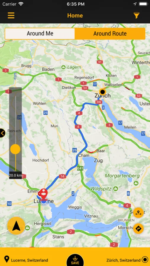 Let’s say, you were to drive from Lucerne to Zurich, and would be interested in knowing about “tourist attractions”, as well as some “restaurants” and “fuel stations” along the way. The ON THE WAY app could help you do just this, and easily so...