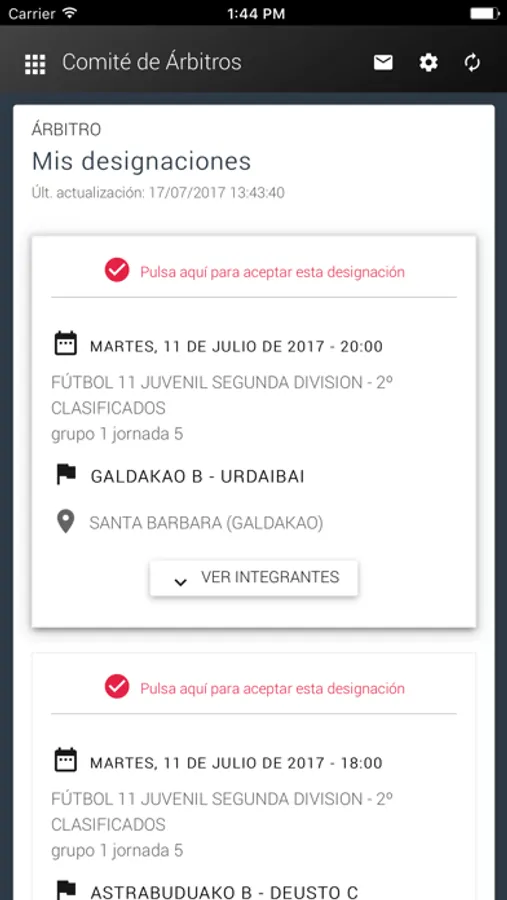 Funcionalidades para informadores: Rellena los informes arbitrales y recibe tus designaciones y mensajes del Comité directamente en el móvil.