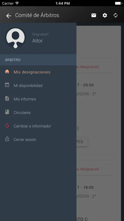Funcionalidades para árbitros: Modifica tus datos de perfil y disponibilidad y recibe tus designaciones arbitrales, tus informes y mensajes del Comité directamente en el móvil.