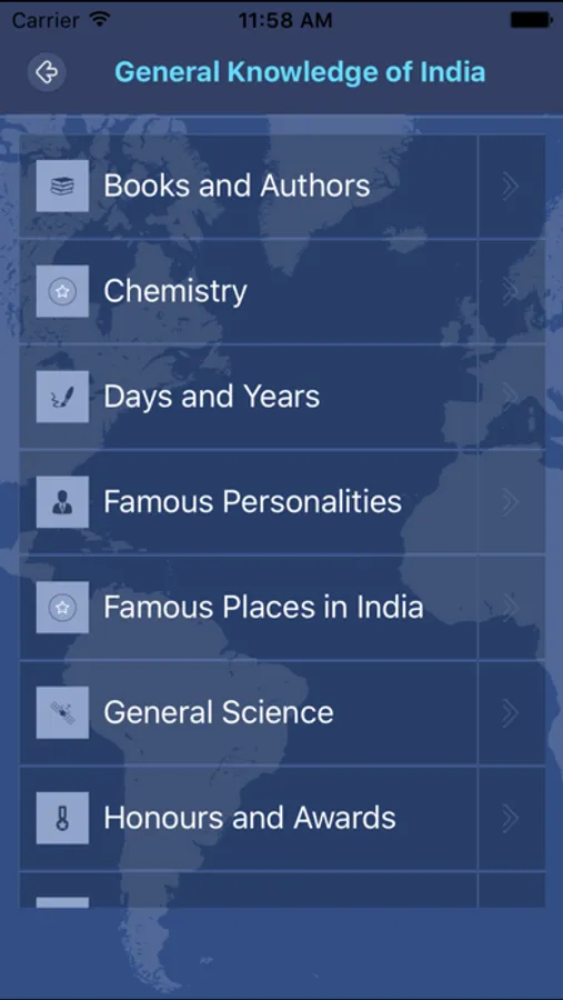 Information about Indian history, politics, personalities,sports ,economy, geography and all the science about computer science and general science.