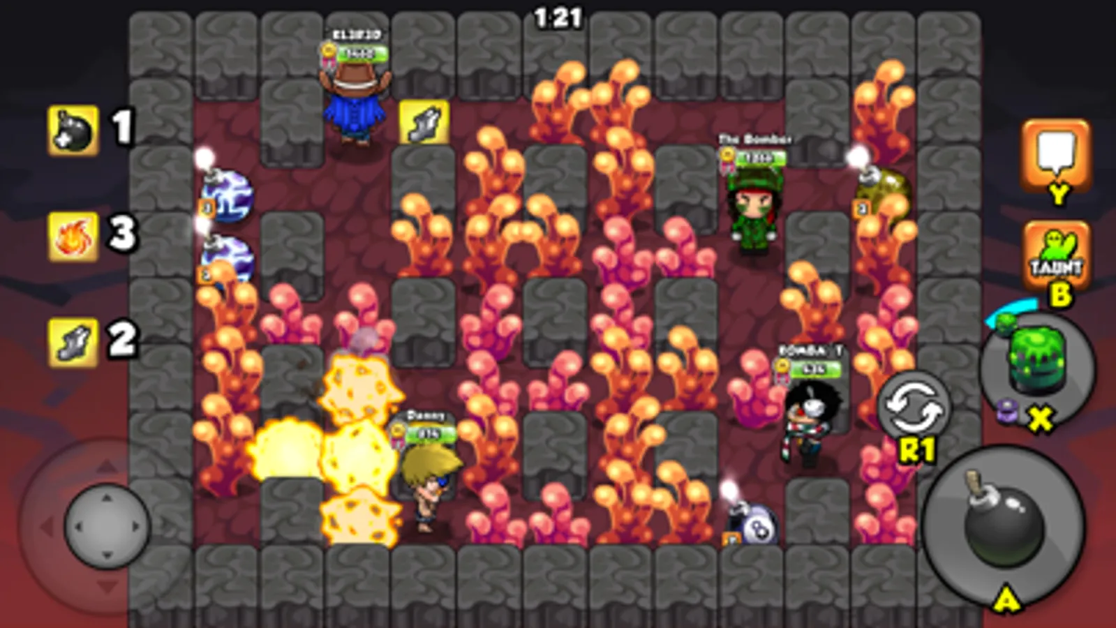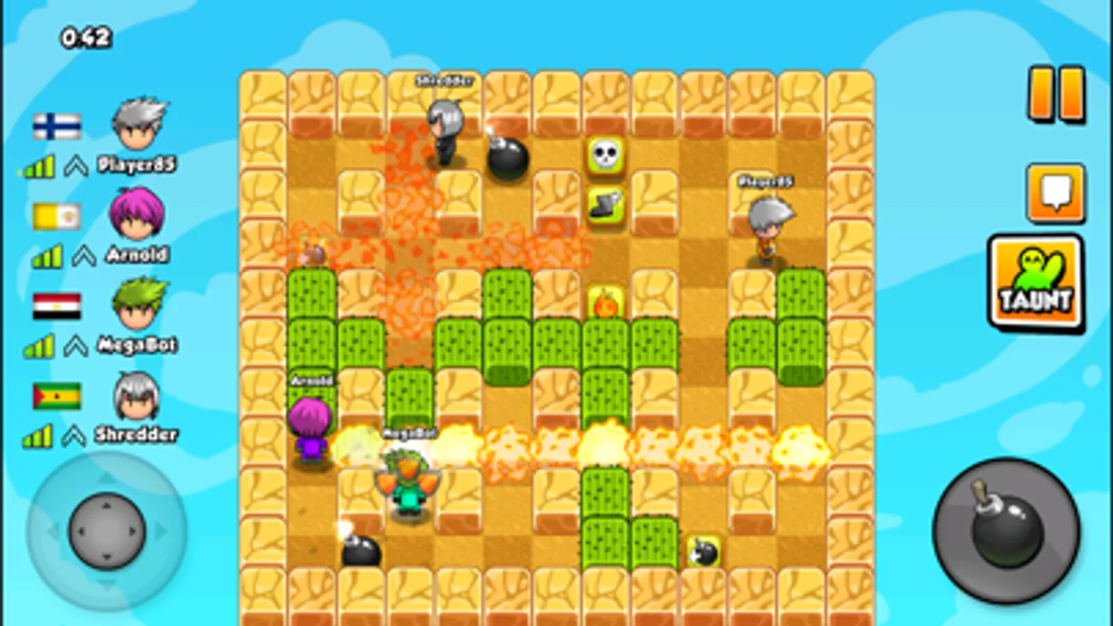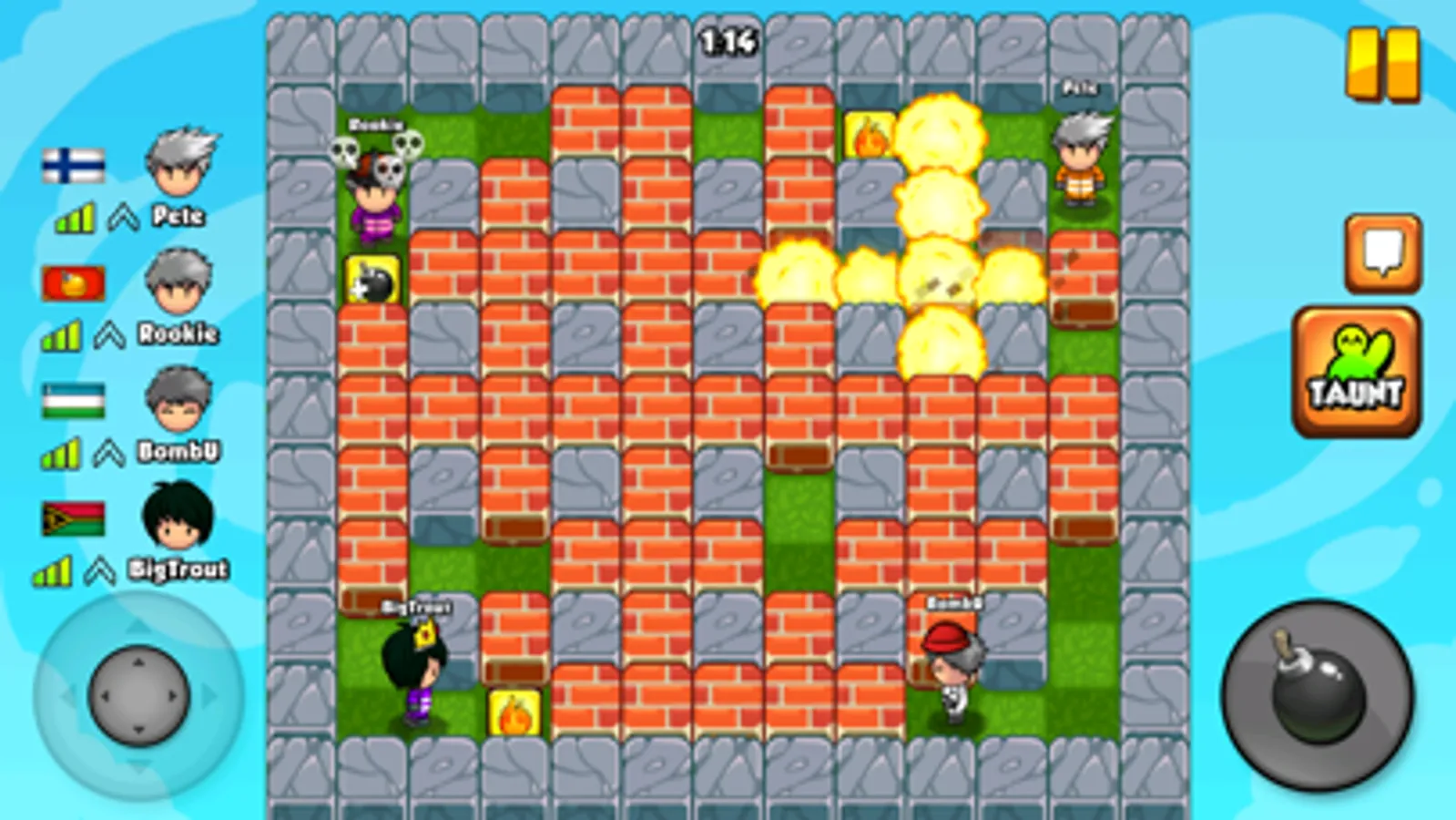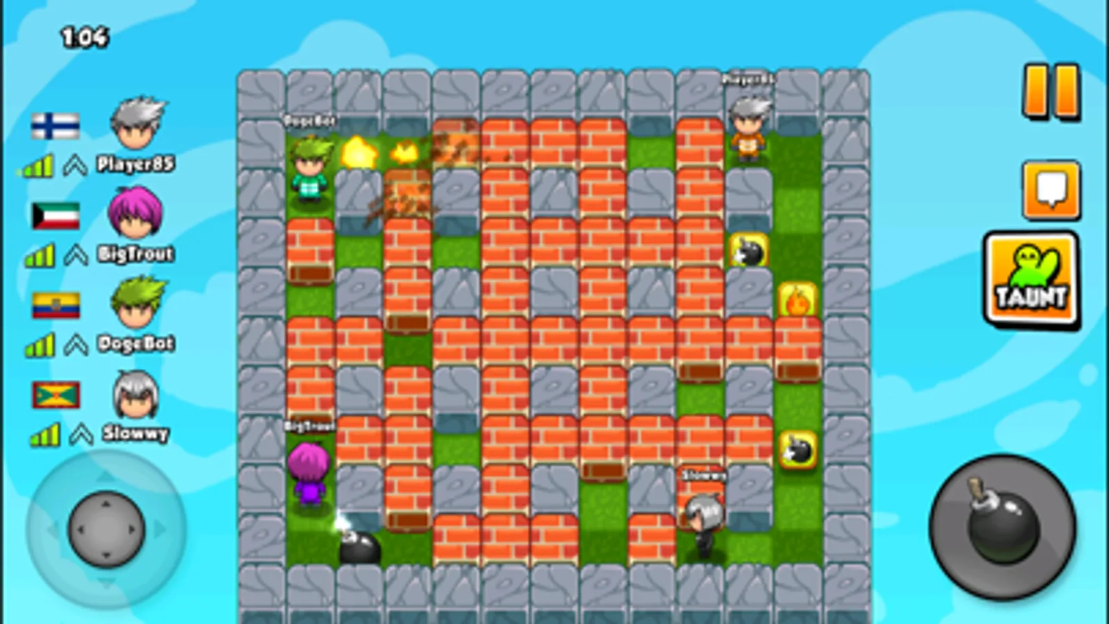 - Compete in the online arenas to reach new heights and unlock new interesting bombs and powerups!
