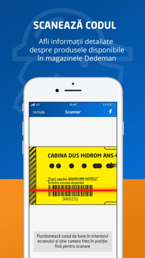 Vrei să afli informații detaliate despre produsele disponibile în magazinele Dedeman? Deschide aplicația Dedeman, scanează codul de bare al produsului aflat la raft și află instant detaliile tehnice și avantajele acestuia.