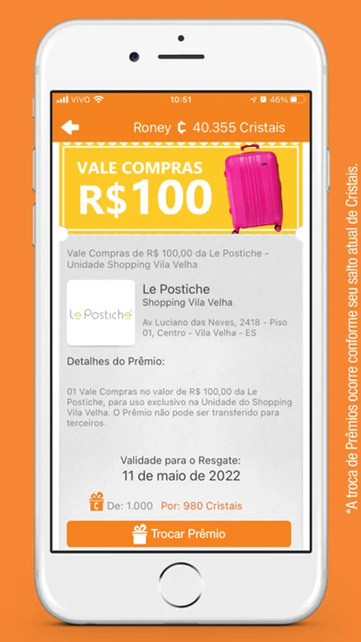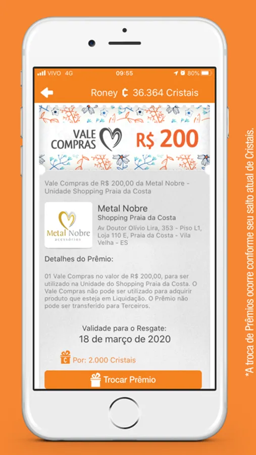 Você pode resgatar Prêmios em loja de moda, farmácia, restaurante, casa de carnes, ótica, pet shop, serviços de beleza e estética e muito mais.