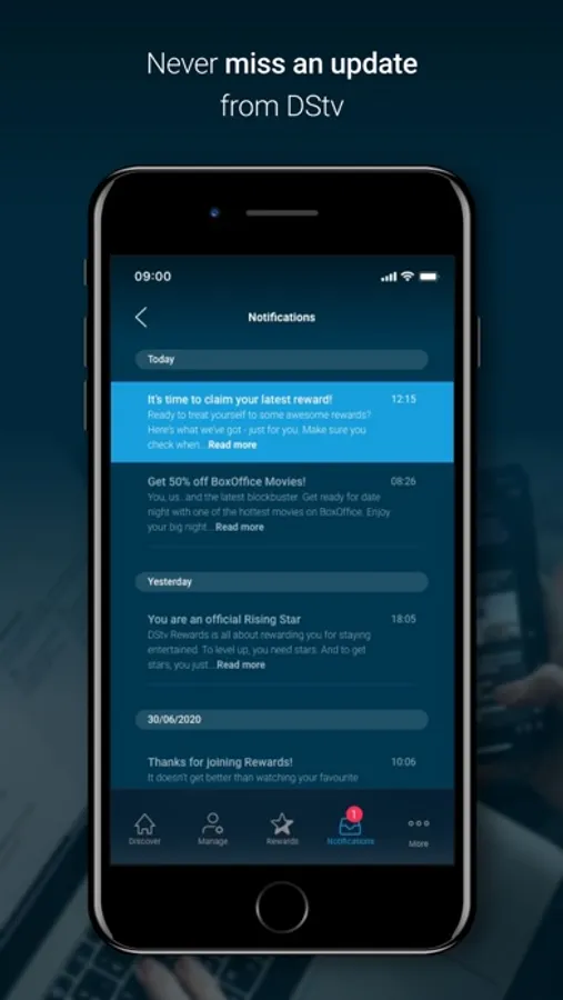 Get access to food and retail vouchers, hotel stays and much more monthly. Enter exclusive competitions, win experiences and get BoxOffice movies on us. We also have free upgrades and Showmax discounts up for grabs. Look out for app-only DStv Rewards!