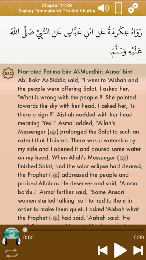This application gives you the ability to read and to listen to the 97 books of Sahih Bukhari on your Iphone / Ipad / Ipod Touch.