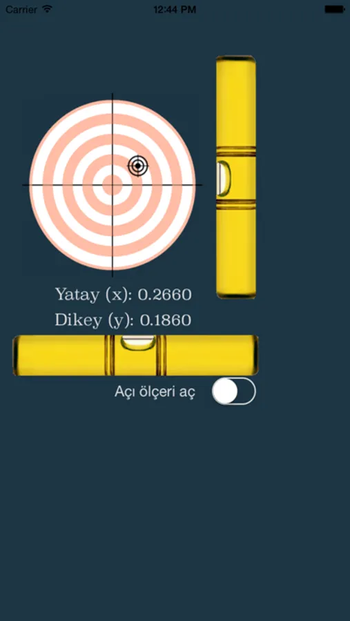Su terazisi uygulaması ile herhangi bir düzlemin eğim derecesi ölçülebilir. Düz bir yüzeyin düzlük derecesi hesaplanabilir. Yüzeyin yatay(x), dikey(y) eğim koordinatları ölçülebilir.