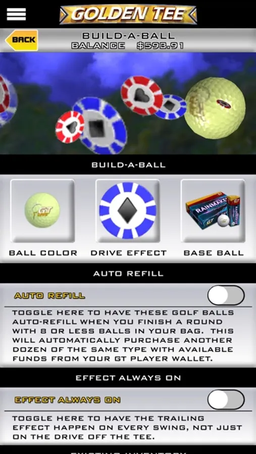 • The Pro Shop includes the ability to Build-A-Ball, Build-A-Bag, purchase custom putters and set your equipment to auto-rebuy so you don't have to waste game time at the cabinet restocking your virtual gear!