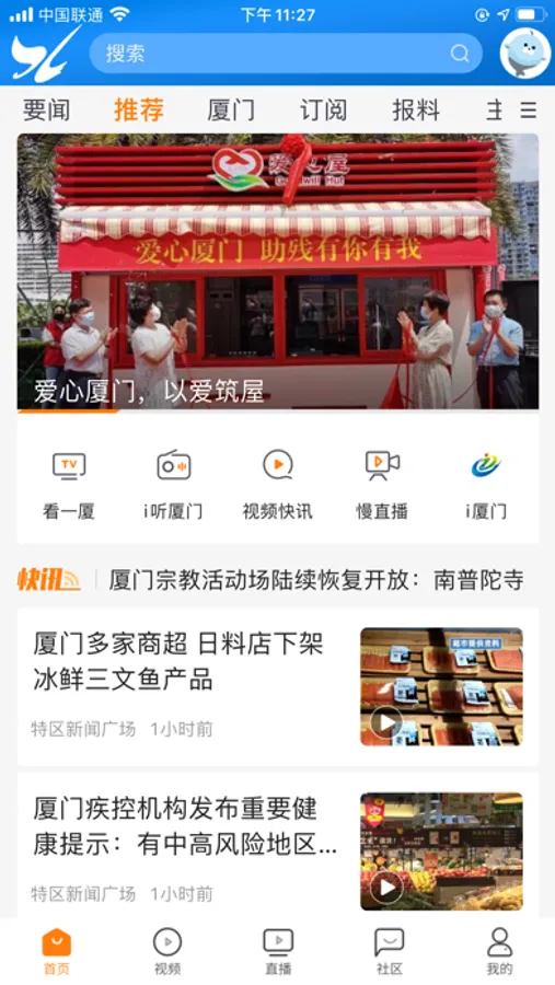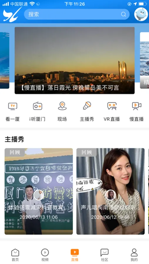 3、直播:独家厦视节目同步直播,随时点播与回看;厦广频率走到哪儿听到哪儿,让您收听更简单;活动直播带您直击现场,慢直播、主播秀、VR直播新鲜来袭,让你足不出户看厦门;