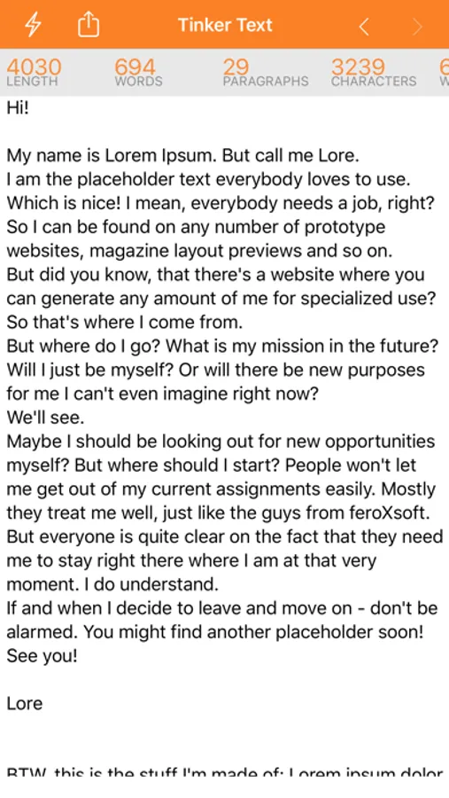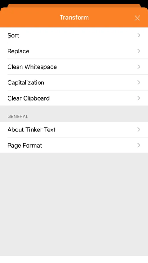 Tinker Text also helps you to transform it to uppercase, lowercase or clean up whitespace. All results are immediately copied back to the clipboard so you have them at hand when you need them! Plus you can share the result via the standard share options.