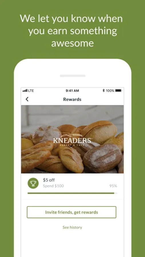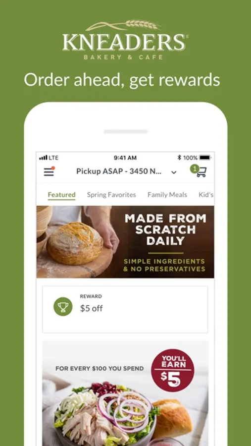 Skip the Line® and earn free food with the Kneaders Bakery & Cafe App. Simply download the app, register your credit/debit card(s), and begin earning points on every purchase. Redeem your rewards on gourmet salads, handcrafted sandwiches, decadent pastries, and more.